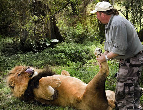 英國飼養(yǎng)員成南非"守獅人" 為雄獅按摩腳掌(圖)