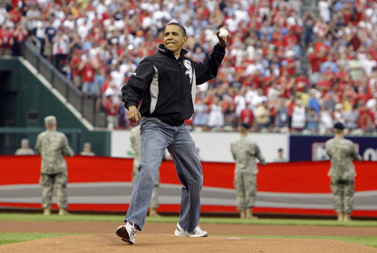 中新網(wǎng)7月15日電 據(jù)美聯(lián)社等媒體報(bào)道,美國(guó)總統(tǒng)奧巴馬14日在圣路易斯為美國(guó)職業(yè)棒球全明星賽開球。事后接受采訪時(shí)他透露為了投出好球,他在白宮的玫瑰花園練習(xí)多次。