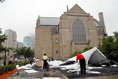 在明尼蘇達(dá)州明尼阿波利斯最大的教堂,大風(fēng)吹襲時(shí)有120人正在舉行活動(dòng),目擊者看到大風(fēng)好似一堵墻,呼嘯而過,人們在教堂內(nèi)尋找安全角落進(jìn)行躲避,所幸沒有人員受傷。