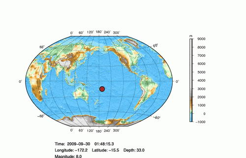 據(jù)中國地震臺(tái)網(wǎng)測定,北京時(shí)間9月30日01時(shí)48分,薩摩亞群島地區(qū)(南緯15.5,西經(jīng)172.2) 發(fā)生8.0級(jí)地震,震源深度約33公里。
