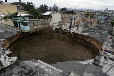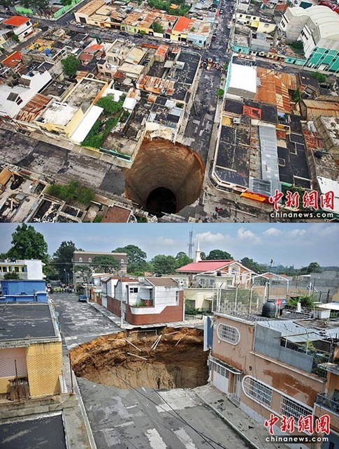 5月31日,熱帶暴風(fēng)雨“阿加莎”在危地馬拉首都危地馬拉城市區(qū)路面造成一個深60米、直徑30米的巨洞。專家認為,填洞并非根本解決之道,如果不改善地下的管線埋設(shè)問題,類似巨洞可能將再出現(xiàn)。