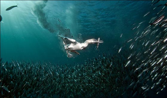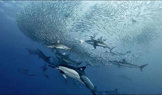 這群從南非海域向更暖和的印度洋遷徙的沙丁魚不僅要面對能以每小時40海里行進(jìn)的鯊魚和海豚的追逐,還要防止陰險的塘鵝從空中的偷襲。