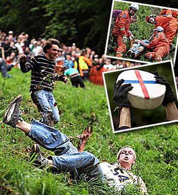 今年共有200名參賽者,他們要冒險(xiǎn)從坡度達(dá)一比二的庫(kù)珀山山坡滾下來(lái),有的參賽者滾到兩腳朝天。據(jù)估計(jì),這場(chǎng)比賽吸引了約一萬(wàn)人到場(chǎng)觀看。能夠完成賽事而沒(méi)有受傷的參賽者已屬難得,因?yàn)樗麄円獜陌纪共黄降纳狡聺L下來(lái),很容易會(huì)扭傷腳踝或骨折。