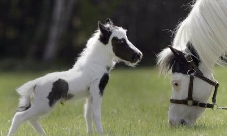 據(jù)報(bào)道,這匹擁有白毛黑斑的小馬一出生就相當(dāng)?shù)男。抑挥?磅重,比之前吉尼斯世界紀(jì)錄最小的馬還輕3磅。盡管身材矮小,但它的全身比例非常均勻。