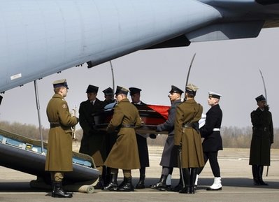 據(jù)俄羅斯媒體報道,運載波蘭總統(tǒng)遺體的波蘭空軍運輸機從斯摩棱斯克啟程前往華沙?J斯基夫人瑪麗亞的遺體稍后也將運往華沙。