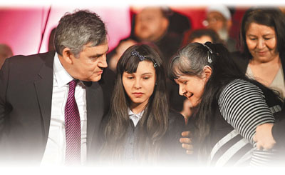 在布朗發(fā)言前,一名14歲女孩上臺(tái)哭訴,若她在財(cái)政部當(dāng)清潔工的媽媽工資較高,她的生活將截然不同。她說(shuō):“如果他們支付最低生活工資,我的媽媽便可負(fù)擔(dān)地鐵車費(fèi),我可每天多見(jiàn)她3小時(shí)。”布朗上前擁抱并安慰她,場(chǎng)面感人。