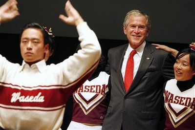 中新網(wǎng)11月5日電 據(jù)美國(guó)媒體報(bào)道,4日,在奧巴馬當(dāng)選美國(guó)總統(tǒng)整整一周年之際,小布什卻跑到日本向早稻田大學(xué)的師生大談棒球經(jīng)。