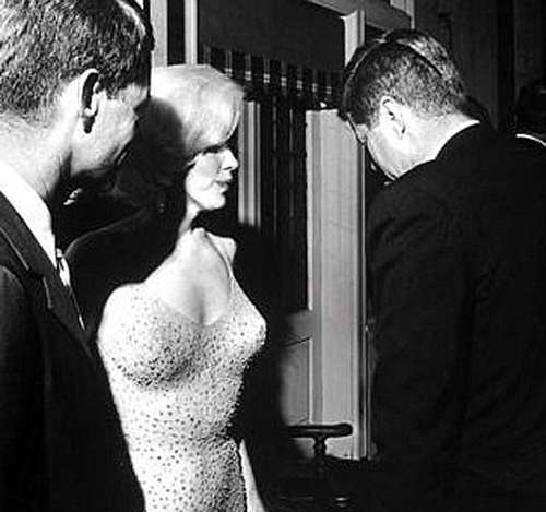 1962年5月19日,為慶?夏岬峡偨y(tǒng)即將到來的生日,瑪麗蓮-夢(mèng)露身穿綴滿亮片的露背晚禮服,在紐約麥迪遜花園廣場(chǎng)獻(xiàn)唱了一首甜蜜的《總統(tǒng)先生,生日快樂》。演唱結(jié)束后,白宮攝影師塞西爾-斯托頓抓拍到一張瑪麗蓮夢(mèng)露與肯尼迪兄弟的合影。