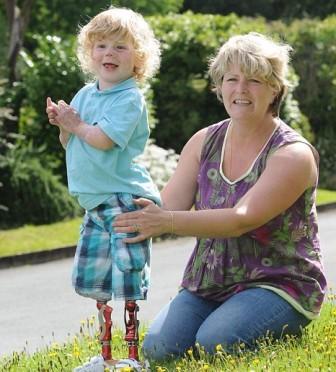 中新網(wǎng)7月29日電 英國一名3歲男童前年患上腦膜炎,要切除雙腿,最近他裝上1.25萬英鎊的仿生義肢,并重新學會走路。