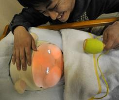 中新網(wǎng)3月10 日電 據(jù)外電10日報道,日本近日推出一款新型機器人“嬰兒”。這個被昵稱為“太郎”的機器嬰兒在人們輕輕搖擺或者撫摸它時,會發(fā)出咯咯的笑聲,并做出搖手晃腳的可愛姿態(tài),但它也會像真正的嬰兒那樣發(fā)出任性的哭聲。