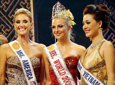 首屆“世界夫人”選美大賽在1985年舉辦。去年的“世界夫人”稱號(hào)由烏克蘭夫人納塔利婭·什馬連科娃摘得。今年她特地飛抵越南,為自己的繼任者戴上后冠。