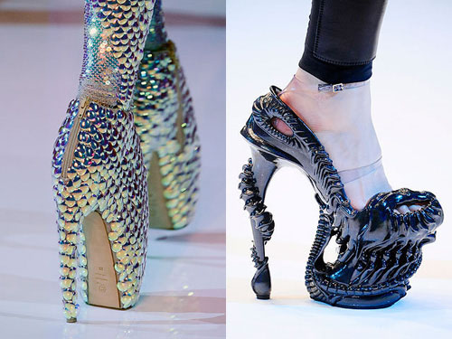 其實,早在1994年,名模娜歐蜜-坎貝兒(Naomi Campbell)穿著龐克教母薇薇安-魏斯伍德(Vivienne Westwood)設計的18公分高跟鞋走秀時,在舞臺上跌得四腳朝天,成為時尚界經典一摔。然而,這次麥昆設計的鞋子又再高3英寸,導致名模們串連抗議。