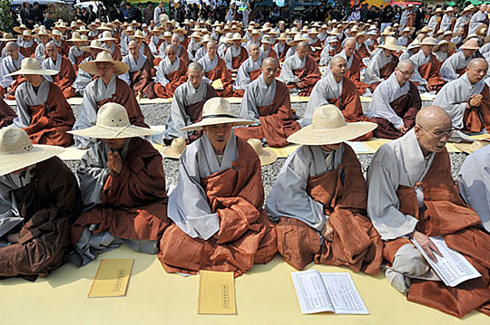 5月24日,韓國僧人在已故韓國前總統(tǒng)盧武鉉家鄉(xiāng)峰下村舉行法事活動悼念盧武鉉。