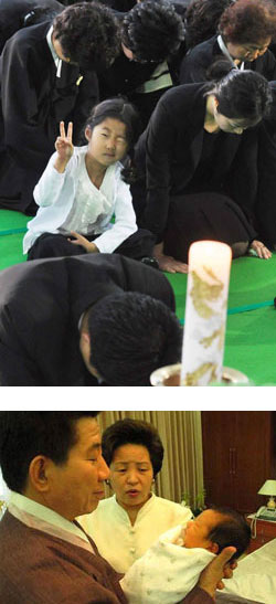 當(dāng)時,盧武鉉的孫女盧緒恩(音)似乎并不知道爺爺去世,顯得天真無暇,這更使旁邊人悲痛萬分。發(fā)喪時,天真的小緒恩坐在權(quán)良淑女士旁邊向遺像做出“V”型手勢。