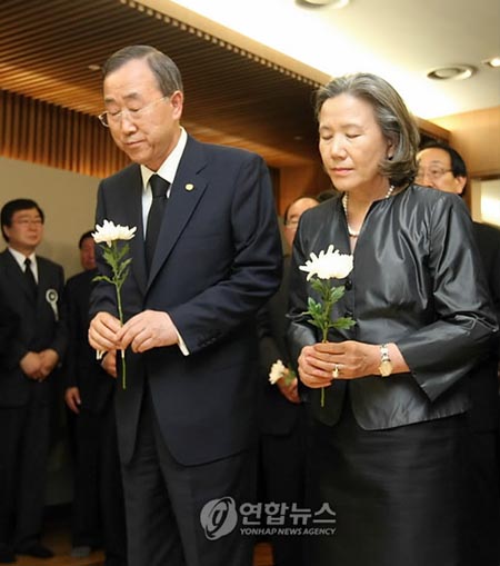 在金大中生前接受治療的醫(yī)院臨時(shí)設(shè)立的靈堂中,潘基文表達(dá)了對(duì)金大中逝世的難過之情和失落感。他向金大中的遺孀、家人及韓國人民和政府表示深切慰問。