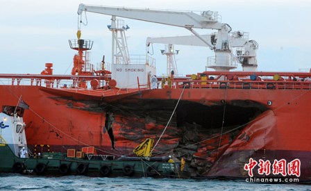 馬來(lái)西亞海事執(zhí)法局表示,載有6.2萬(wàn)噸原油的油輪左舷艙被劃出一道10米長(zhǎng)的裂縫,已被拖往樟宜港維修,而肇事貨輪仍停泊在撞船現(xiàn)場(chǎng)。撞船地點(diǎn)位處繁忙的商業(yè)航道。新加坡是全球最繁忙的港口之一,亦是亞洲的石油貿(mào)易中心。