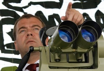 梅德韋杰夫?qū)?22厘米口徑的榴彈炮很感興趣。他說:“我對(duì)它很熟悉,以前曾經(jīng)開過炮!