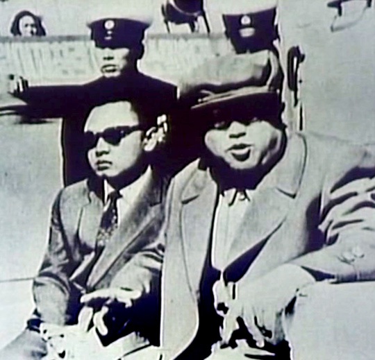中新網(wǎng)8月28日電 據(jù)韓國(guó)《中央日?qǐng)?bào)》28日?qǐng)?bào)道,朝鮮中央電視臺(tái)25日播放了講述朝鮮國(guó)防委員長(zhǎng)金正日生平的紀(jì)錄片《照耀世界的先軍太陽(yáng)》第一部。圖片顯示,金委員長(zhǎng)在金日成綜合大學(xué)念大二時(shí)的1961年,他陪伴金日成主席(1994年去世)前往大德山軍隊(duì)進(jìn)行現(xiàn)場(chǎng)指導(dǎo),坐在旁邊的位置上。這是金日成父子首次一起進(jìn)行現(xiàn)場(chǎng)指導(dǎo)的場(chǎng)面。