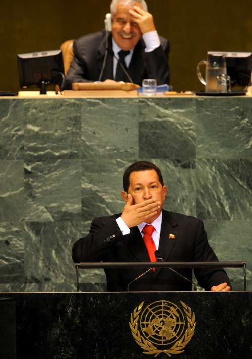他更打趣說:“奧巴馬,來加入社會(huì)主義者行列吧,我們在此邀請你加入邪惡軸心國。”查韋斯促請奧巴馬撤銷對古巴實(shí)施的禁運(yùn),以及放棄在哥倫比亞建立美軍基地。他在國內(nèi)發(fā)表的演說往往是馬拉松式的長篇演說,這次的聯(lián)大演講亦超過一小時(shí),不過他保證自己不會(huì)說得像利比亞領(lǐng)袖卡扎菲那么長。此言一出,臺(tái)下報(bào)以陣陣笑聲;卡扎菲前一天的聯(lián)大演說長達(dá)逾一小時(shí)半。
