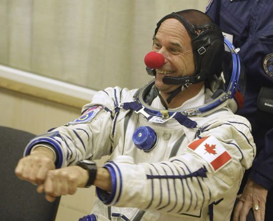 拉里柏提被封為進(jìn)入太空的第一位小丑,他一共帶了九個(gè)紅鼻頭,太空站人人有份。他在出發(fā)前說:“我將帶著我的幽默升空。即使在這樣嚴(yán)肅的場(chǎng)合,仍然需要留點(diǎn)幽默的空間。”不過,他也得肩負(fù)嚴(yán)肅的任務(wù)。拉里柏提打算從國(guó)際太空站主持一場(chǎng)兩小時(shí)的實(shí)況轉(zhuǎn)播表演,倡導(dǎo)潔凈用水以及保護(hù)地球水資源的重要性。