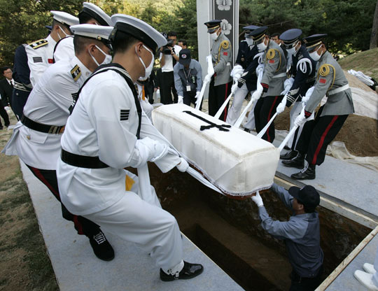 報(bào)道稱,2日上午9時(shí)30分左右,清掃員發(fā)現(xiàn)墳?zāi)购筮叢萜河斜粺暮圹E。顯忠院有關(guān)人士說(shuō):“清掃墳?zāi)沟穆殕T首先發(fā)現(xiàn)了被燒痕跡。今天上午9時(shí)10分巡邏時(shí),還沒(méi)有發(fā)現(xiàn)任何可疑痕跡。同時(shí),被火燒的地段正是附近閉路電視鏡頭的死角,因此未能找到失火原因。”