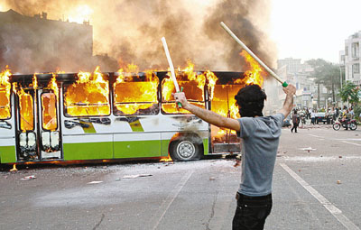 他說(shuō)示威隊(duì)伍約1000人,后來(lái)大批駕駛電單車的軍警人員逼近,毆打他們,人群四散躲避之際,民兵卻帶著棍棒在小巷里埋伏。示威者霎時(shí)間無(wú)路可退,幸得巷里人家開(kāi)門營(yíng)救。當(dāng)示威者遠(yuǎn)離警察和民兵后,便高呼“伊朗已變成巴勒斯坦”等口號(hào),駛經(jīng)的汽車都響號(hào),公共汽車乘客揮手支持。