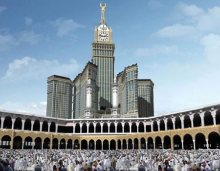 中新網(wǎng)4月15日電 據(jù)外電14日?qǐng)?bào)道,就在世界最高建筑迪拜塔還在人們的驚嘆聲中熠熠生輝之時(shí),不遠(yuǎn)處的沙特麥加,又一座超高建筑也將揭開它壯麗的面紗?偢叱^800米的麥加“鐘樓”建成后將成為世界第二高的建筑,它的高度是倫敦大本鐘的6倍。