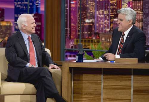麥凱恩十一日在全國(guó)廣播公司的《今夜秀》(Tonight Show)中接受主持人積連奴訪問。他看來精神不錯(cuò),而且能夠泰然地拿敗選一事來開點(diǎn)玩笑。他說自己在敗選后一直“睡得像個(gè)嬰兒般:睡兩個(gè)鐘頭,然后起床哭一下,然后又睡兩個(gè)鐘頭!丙渼P恩稱,他所住的亞利桑那州現(xiàn)在已出了四名在大選中落敗的總統(tǒng)候選人,因此該州“可能是美國(guó)唯一一個(gè)母親們不會(huì)告訴子女他們有朝一日可以當(dāng)上總統(tǒng)的州分了。”他又說,大選翌日他和妻子辛迪做的第一件事是出門買咖啡,而“不是買報(bào)紙”。