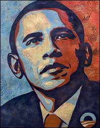 費(fèi)爾雷創(chuàng)作的奧巴馬肖像與以往總統(tǒng)侯選人的競(jìng)選海報(bào)風(fēng)格大不相同,最初曾以“希望”命名,后來,改稱“變革和投票”。