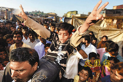 中新網(wǎng)3月1日電 據(jù)香港《文匯報》1日報道,在奧斯卡橫掃8獎大獎的《貧民窟的百萬富翁》中飾演男主角童年的印度童星愛資哈爾丁,由洛杉磯返回孟買時受到英雄式歡迎,他父親伊斯梅爾更將他捧起,把他像獎座般展示,但周四愛資哈爾丁拒絕應父親要求到屋外“做騷”,父親當眾對他又踢又摑,令鄰居和途人大為震驚。