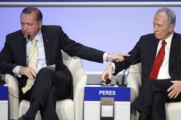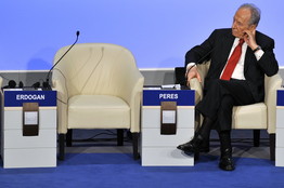土耳其總理埃爾多安發(fā)言時手指著一旁的以色列總統(tǒng)佩雷斯