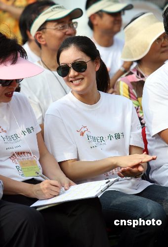 很少在香港公開(kāi)場(chǎng)合露面的伏明霞,二十七日陪同丈夫梁錦松參加維園舉行的小母牛[競(jìng)步善行]社會(huì)各界同心助國(guó)內(nèi)農(nóng)民脫貧慈善賽活動(dòng)。