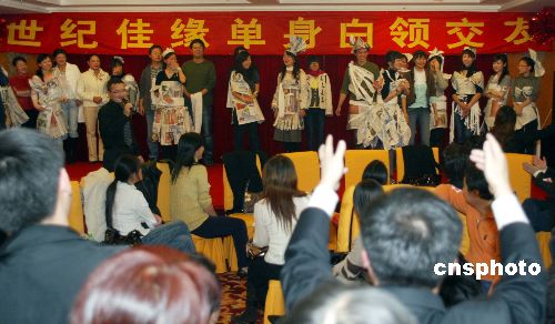 這次互動交友活動的高潮是愛情大轉(zhuǎn)盤游戲,參加的所有人按照性別排成了兩個同心圓,男士在內(nèi)圈,女士在外圈,男女按照反方向旋轉(zhuǎn),以確保每個人都有機會聯(lián)系到現(xiàn)場的所有異性,覺得誰中意就可以在傳情卡上寫下自己的聯(lián)系方式發(fā)給對方。而豬八戒背媳婦的游戲,基本上背媳婦的和“媳婦”都屬于彼此看對眼的,否則也不會輕易參與這種身體接觸的游戲。記者發(fā)現(xiàn),會場有一位身著白色上衣氣質(zhì)極佳的卷發(fā)女孩,收到了十多枝玫瑰,而她的身邊,總是有男士圍繞。換組的時間到了,還有男士因為她而舍不得離開這個組。也有一些年齡較大的女士,獲得的關(guān)注就較少。這或許就是這種大規(guī)模集體相親活動的殘酷競爭性所致,也是這種活動最大的弊端。在主辦方宣布活動結(jié)束后,現(xiàn)場還有許多人留戀不舍。記者觀察到約有七八十對成雙成對的會員,結(jié)伴退出,或相約晚餐。據(jù)世紀(jì)佳緣交友網(wǎng)站創(chuàng)始人小龍女介紹:北京的會員比較多,而且各方面素質(zhì)也比較高,溝通和交流起來較為大方,大家都抱著同樣的目的而來,所以也很容易克服心理上的障礙,達(dá)到結(jié)識新朋友,邂逅意中人的目的。 中新社發(fā) 楊可佳 攝