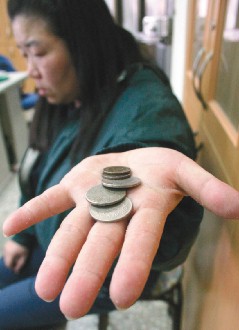 據(jù)臺(tái)灣《聯(lián)合報(bào)》報(bào)道,四十三歲的陳女昨天在警局翻遍全身口袋,僅有三十二元。“這是我全部的積蓄,要留給媽媽下一餐!闭f完,陳女淚水立刻滑下。警察見狀不忍,掏腰包買面包請(qǐng)她吃,她抹淚紅著眼狼吞虎咽,似乎餓壞了。