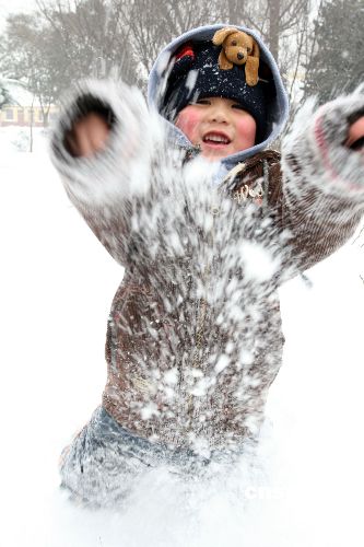 1月20日,在河南許昌西湖公園,兒童在雪中嬉戲。中新社發(fā) 牛書培 攝