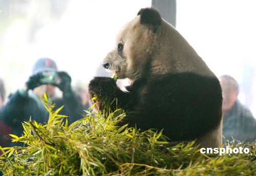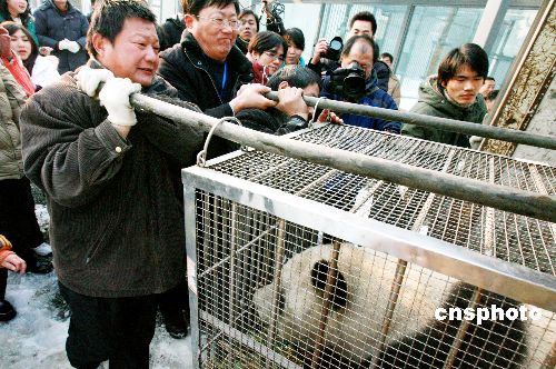 2月3日,大熊貓“蘇蘇”在蘇州動物園新居與游客見面。當天下午4時許,國寶大熊貓“蘇蘇”從徐州乘火車抵達蘇州,并在蘇州動物園內開始為期一年的展出,吸引了許多游客先睹為快,為姑蘇市民新春佳節(jié)增添喜氣。中新社發(fā) 蘇秀 攝