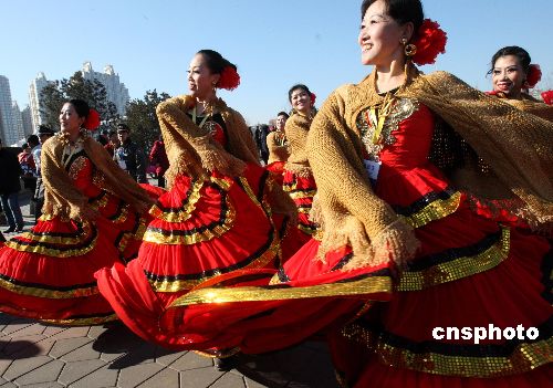 2月9日,在北京舉行的“2008北京朝陽國際風(fēng)情節(jié)”上,來自英國、斯洛文尼亞、西班牙、美國、瑞典、俄羅斯、烏拉圭等10個國家的多支表演藝術(shù)團(tuán)隊、180多位中外藝術(shù)家在多個舞臺進(jìn)行不同場次的精彩表演。中新社發(fā) 錢興強 攝