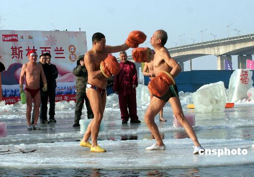 趣圖:哈爾濱冬泳表演花樣翻新