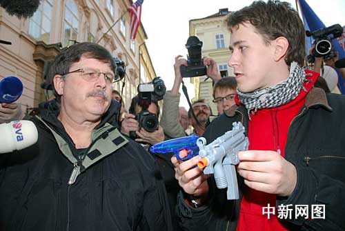 中新網(wǎng)布拉格3月16日電 在昨天下午布拉格舉行的反對美國在捷克建立中歐導(dǎo)彈防御系統(tǒng)的雷達(dá)基地的示威游行中,捷克示威民眾要求美國駐捷克大使館向美國政府轉(zhuǎn)交他們尋獲的所謂“伊朗大規(guī)模殺傷性武器”的證據(jù),而這些證據(jù)實(shí)際上只是一些塑料兒童玩具。示威者用一種特殊方式嘲笑和譏諷美國政府尋找戰(zhàn)爭借口如同兒戲,入侵伊拉克還想打伊朗。