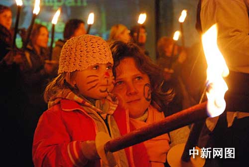 一對(duì)母女3月15日晚上在捷克首都布拉格和平廣場上舉行的要求外國軍隊(duì)撤出伊拉克的反戰(zhàn)火炬集會(huì)上。