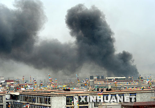 3月14日下午,拉薩市上空濃煙滾滾。 新華社記者 格桑達(dá)瓦 攝