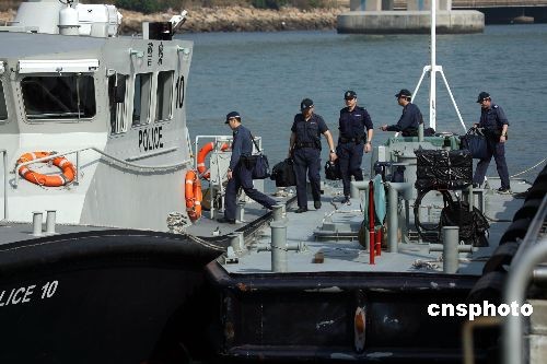 三月二十四日﹐參加香港海域嚴(yán)重撞船意外的海警隊員整裝待發(fā)。二十二日晚﹐香港國際機場以東的大小磨刀洲海面發(fā)生嚴(yán)重撞船意外,一艘烏克蘭注冊的油田補給船與一艘內(nèi)地貨船相撞﹐補給船迅速翻沉﹐七名船員獲救﹐十八名烏克蘭船員隨船一并沉落在三十七米海底﹐至今下落不明。中新社發(fā) 武仲林 攝