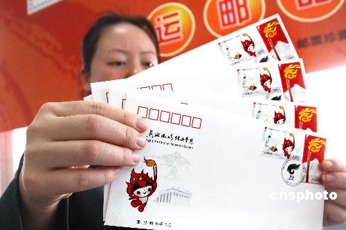 3月24日,北京百萬莊郵局工作人員正在發(fā)售《第29屆奧林匹克運(yùn)動會--火炬接力》紀(jì)念郵品。當(dāng)日,2008年首套奧運(yùn)郵票《第29屆奧林匹克運(yùn)動會--火炬接力》正式發(fā)行。中新社發(fā) 追影 攝