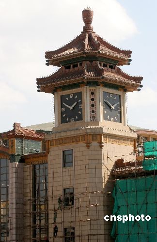 圖:北京站迎奧運(yùn)更換車(chē)站頂部琉璃瓦