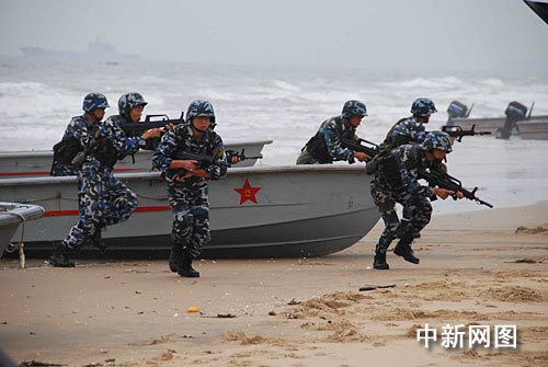 美國上將觀摩中國海軍陸戰(zhàn)隊的軍事演練