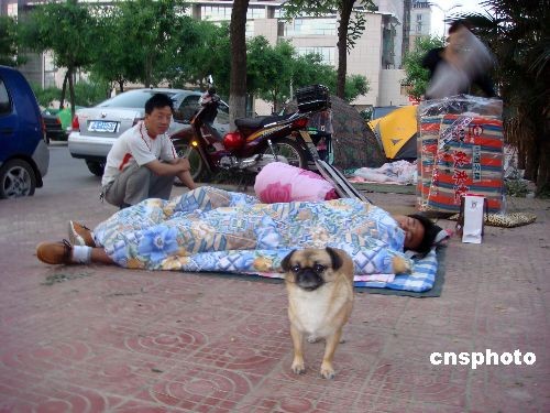 5月19日晚,陜西省應(yīng)急辦、省地震局通過當(dāng)?shù)匦侣劽襟w發(fā)布安民告示:根據(jù)中國地震局專家會商意見,19—20日汶川震區(qū)發(fā)生較強余震的可能性較大,陜西省可能會有較強震感,特別是漢中、寶雞等地,請做好防范準(zhǔn)備。 接到告示后,寶雞市民采取積極措施,冷靜應(yīng)對。千余名市民帶著帳篷、被褥,扶老攜幼,來到位于寶雞市金臺大道的市民廣場度夜,以防余震帶來的不測。5月19日晚18點至5月20日早8點,寶雞市區(qū)沒有發(fā)生明顯震感。 中新社發(fā) 倪樹斌 攝