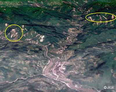 北京時(shí)間5月12日14:28,四川汶川發(fā)生里氏8級(jí)地震,日本宇宙航空研究開(kāi)發(fā)機(jī)構(gòu)(JAXA)19日在其網(wǎng)站上刊登了利用陸地觀測(cè)技術(shù)衛(wèi)星(ALOS)觀測(cè)的數(shù)據(jù)圖。此次觀測(cè)的重點(diǎn)區(qū)域是北川縣,數(shù)據(jù)取得時(shí)間是北京時(shí)間5月18日11:49,通過(guò)圖樣對(duì)比,可以看出此次地震對(duì)北川縣的破壞情況。