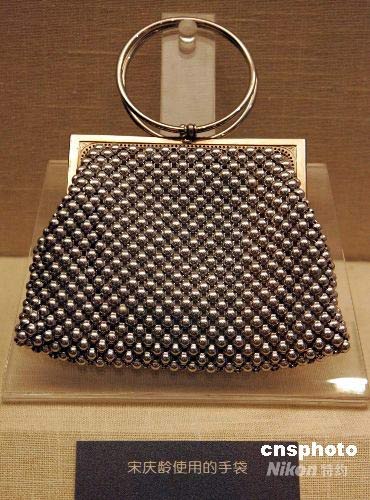 圖為展出的宋慶齡私人生活用品中的一件銀珠手袋。中新社發(fā) 潘索菲 攝