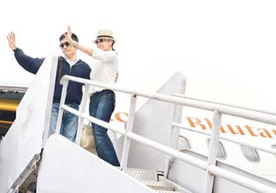 據(jù)香港“太陽報”報道,嘉玲、偉仔及好友林青霞昨晨現(xiàn)身不丹機(jī)場,準(zhǔn)備飛赴印度新德里,展開蜜月之旅。兩人于飛機(jī)臨起飛前20分鐘才抵機(jī)場,守候的傳媒一見兩人,即瘋狂涌前拍照,三人心情特別開心,笑容滿面。新娘嘉玲以悠閑打扮示人,她架著太陽眼鏡、戴帽及佩戴珍珠項鏈,但未見她戴上婚戒。其后他們到機(jī)場貴賓房獲關(guān)員款待,期間嘉玲還合十向傳媒打招呼,而當(dāng)他們過關(guān)登機(jī)時,傳媒一窩蜂沖入禁區(qū)不斷拍照,但并沒有關(guān)員驅(qū)趕,反而吸引不少旅客圍觀看熱鬧。