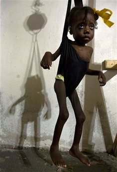 今年,由于風暴襲擊,海地60%的糧食收成被橫掃一空。在某些地區(qū),無國界醫(yī)生組織發(fā)現(xiàn),營養(yǎng)不良的比例高達5%,其中,兒童更是受害最大的人群。據(jù)美聯(lián)社報道,無國界醫(yī)生組織比利時分部的負責人馬克斯.科斯奇表示,除了這26名孩子,還有65個嚴重營養(yǎng)不良的兒童被送到臨時搭建的山區(qū)帳篷診所及太子港等地區(qū)的醫(yī)院接受治療。“有一個孩子在治療中死去了”。這些孩子的癥狀包括腸胃萎縮,因營養(yǎng)不良導(dǎo)致色素減少、發(fā)色變淡,有些甚至出現(xiàn)了浮腫,這是因蛋白質(zhì)缺乏引起的功能紊亂癥狀。